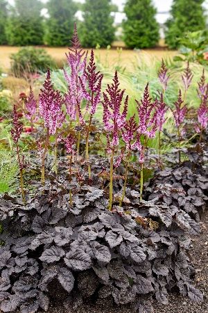 Сорт с крупными темно-шоколадными листьями и сиренево-фиолетовыми цветками. В высоту достигает 50 см, в ширину около 30 см. Стебли не прогибаются. Время цветения — август. Астильбы лучше всего растут на плодородной влажной почве в полутени. Растет и на солнце, но тогда не должно быть недостатка во влаге.