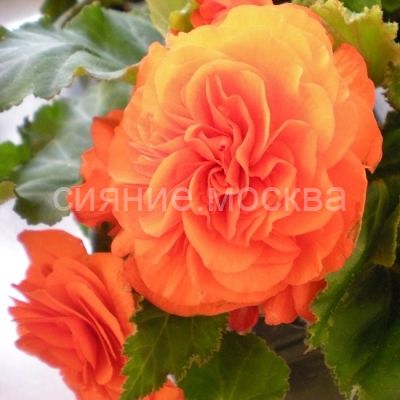 - Цветы бегонии Нон-стоп Априкот крупные, камелиевидные, оранжевого цвета.
