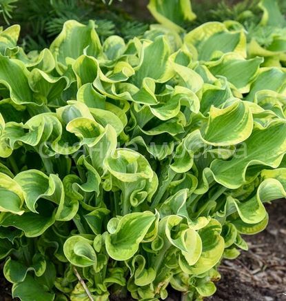 - Её листья светло-зелёные с кремово-жёлтым, а позднее кремово-белым краем.