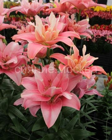 Новинка 2026! Растение высотой до 110 см с крепким цветоносом. Цветки махровые, диаметром до 18 см, персиково-розовой окраски, без тычинок.