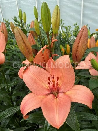 Лососёво-коралловая. Диаметр цветка 17 см, высота 120 см, до цветения 73 дня.