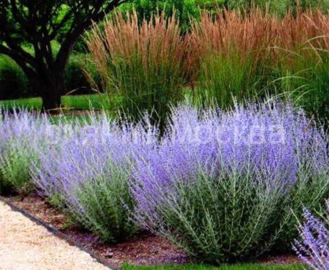-изысканному синевато‑лиловому оттенку, который создаёт в саду иллюзию колышущихся волн и придаёт композиции ощущение прохлады;