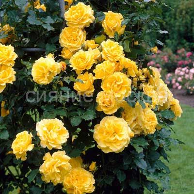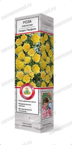 Цветки темно-желтые, густомахровые (до 50 лепестков), с насыщенным ароматом. Листва крупная, тёмно-зеленая, глянцевая.